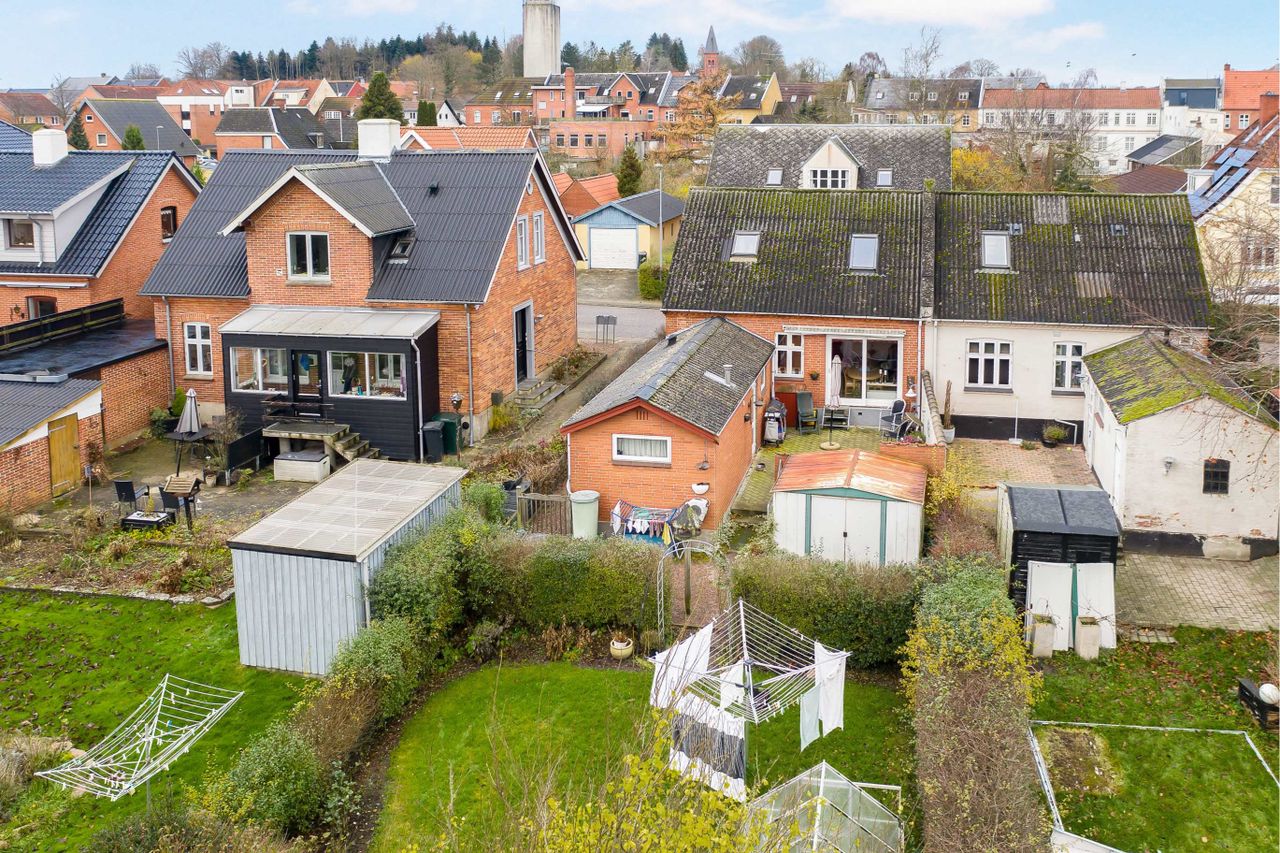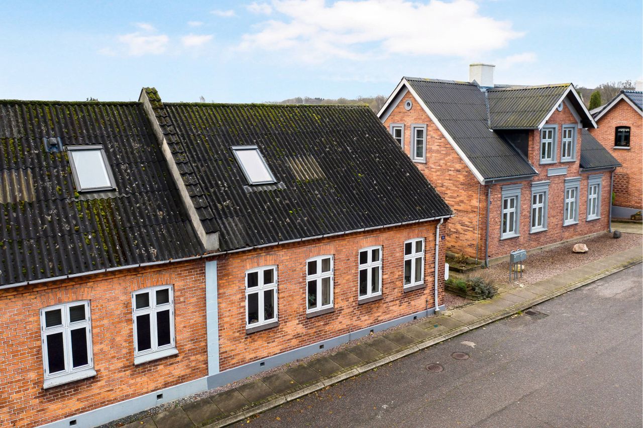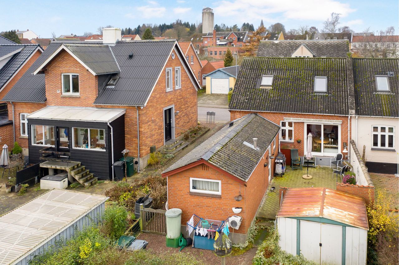Rødstens tvillingvilla med god beliggenhed på stille gade centralt i