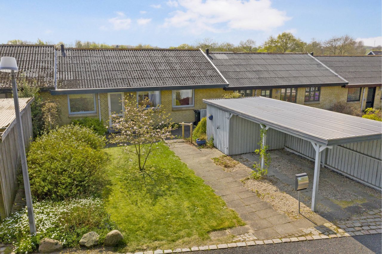 En dejlig rækkevilla med god planløsning. Gule teglsten i facader,