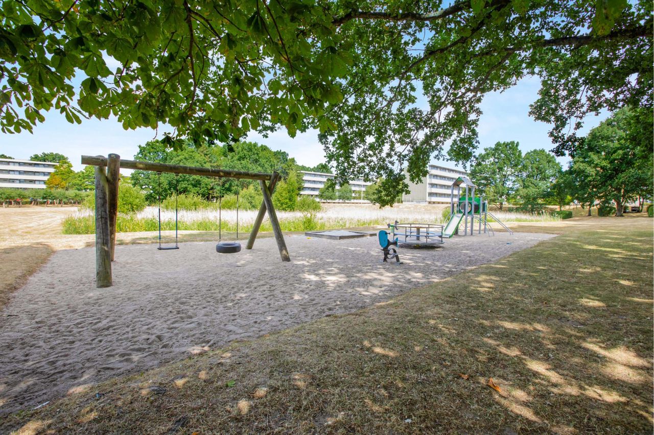 Pæn lejlighed beliggende på 1.sal i velholdt og velordnet ejendom omgivet af grønne områder med legeplads og mindre sø. Tæt ved bybus/stoppested, skole, Søhuscentret ( indkøb, bager/kiosk, posthus m.v. ). En pæn og velbeliggende lejlighed - i cykelafstand til Tarupcentret og Odense City.