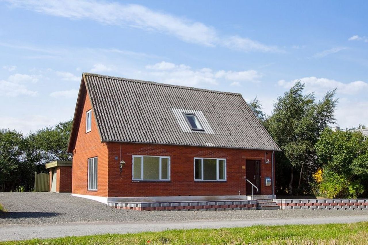 Villaen har røde teglsten i facader, eternittag, nyere vinduer, flotte træ-/klinkegulve - gulvarme i det