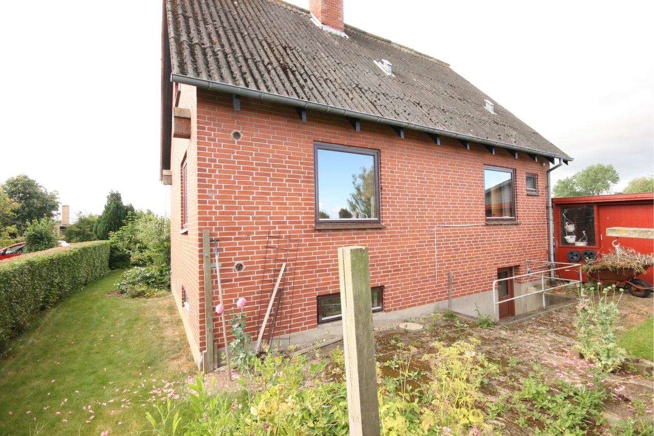 Villaen har røde teglsten i facader, eternittagtag, termovinduer, nyere