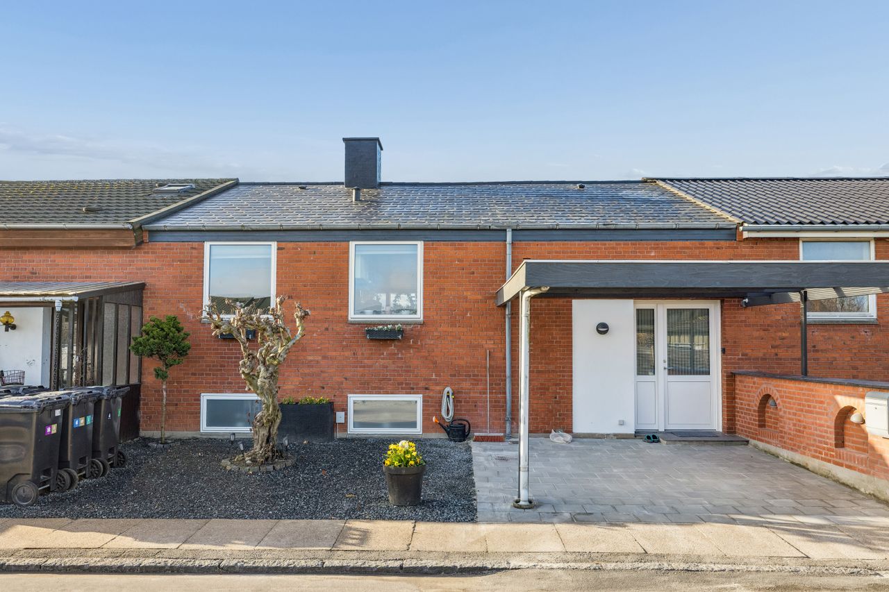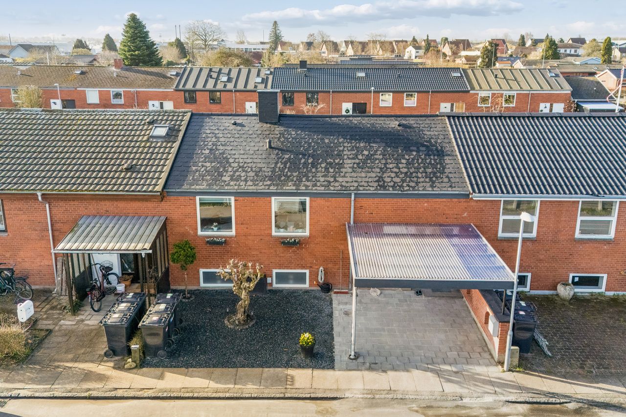 En særdeles velplejet rækkevilla med røde teglsten i facader, eternittag der er malet/imprægneret i 2025, nyere vinduer/døre, trælofter og nyere gulvbelægning. Elinstallationen er nyrenoveret i 2024 og der er forberedt til installation af elladestander i carporter ved indgang. Dejlig ugenert have med flisebelagt/overdækket terrasse ved stueudgang. En yderst velholdt rækkevilla med særdeles gode rapporter.