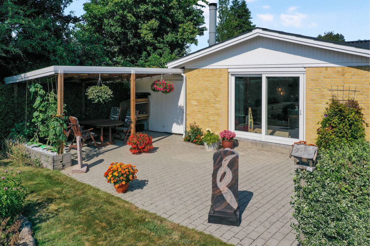 32 m2 carport/udhus og 18 m2 + 13 m2 overdækket terrasse ved