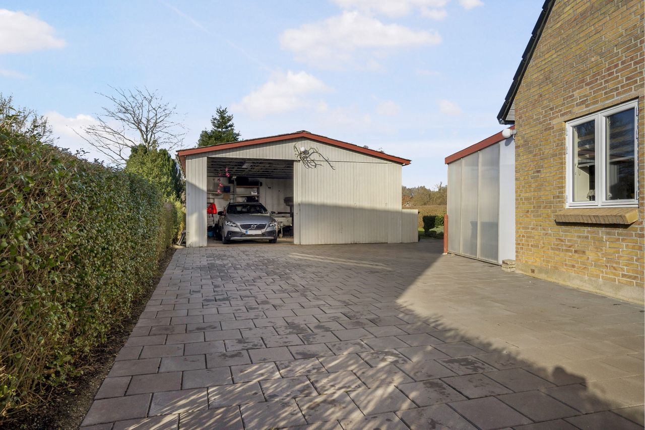 49 m2 garage/værksted med træbeklædte ydervægge. eternittag, støbt gulv og med skydeporte.