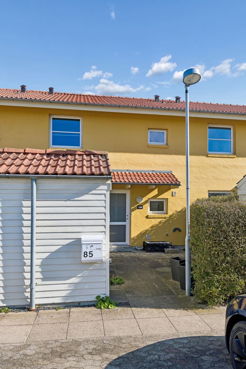 97 m2 velindrettet bolig der i stueplan indeholder entre med skabe og trappe til 1.sal - bryggers med fast bord/vask/vaskemaskine - godt spisekøkken med lyse elemeter og gode hvidevarer - dejlig lys opholdsstue med udgang til flisebelagt terrasse/have. 1. sal indeh. repos - soveværelse med skabe - 2 børneværelser med skabe - flot badeværelse med lyse klinker/fliser, bruseplads og gulvvarme.